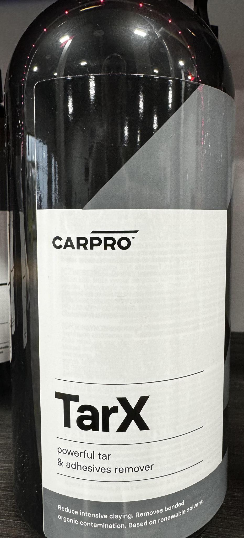 CARPRO TarX is a professional strength tar, adhesive, and bug remover as well as a degreaser that derives its strength from the solvents extracted from orange peels. This incredibly versatile cleaner may be used as a degreaser, tar and asphalt removal, insect, tire mark, adhesive removal, traffic film and more! Simply spray on the surface and allow it to easily melt tar away. For stubborn adhesive residue spray a little TarX on a microfiber and easily wipe the stubborn adhesive away!
