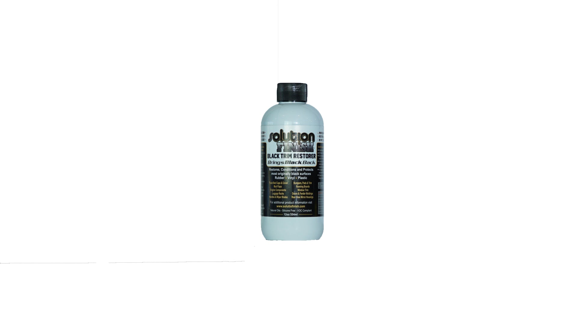 Solution Finish is an incredible product that restores originally black surfaces to a deep, rich, black finish, without the wet look. Solution Finish dries quickly with no greasy residue. This unique formula combines ancient ingredients with advanced polymer technology to provide a spectacular, long-lasting, black, protective finish. Formulated for professional use only, Solution Finish is a silicone-free solution that uses all natural oils and is VOC compliant.